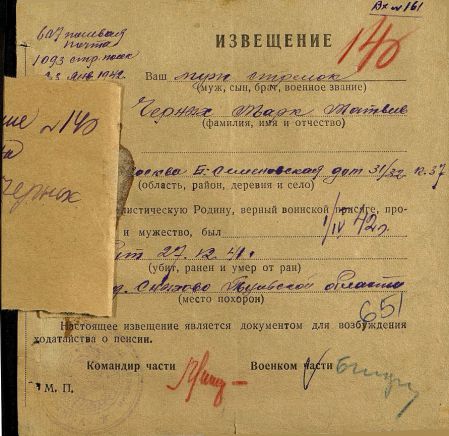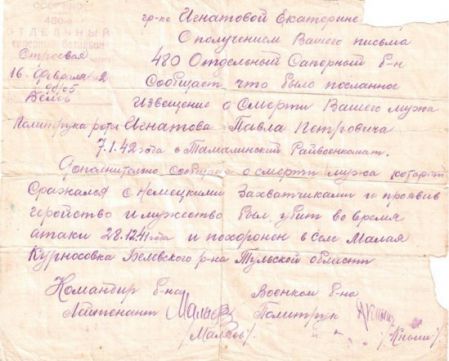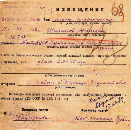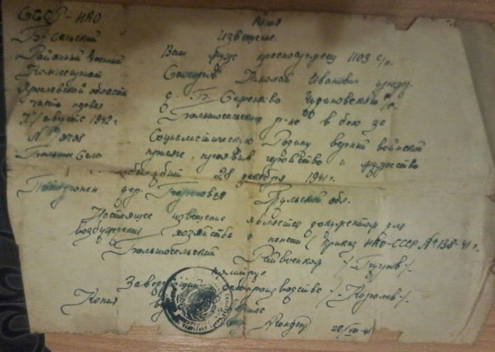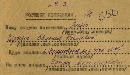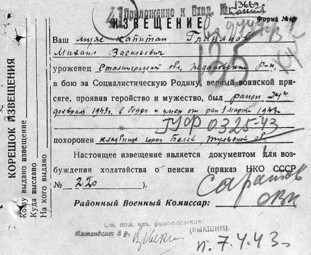 Извещения высланные на людей погибших в Белевском районе
