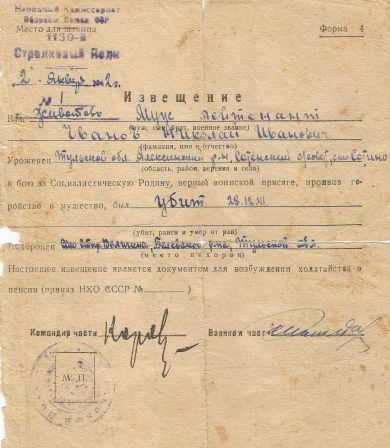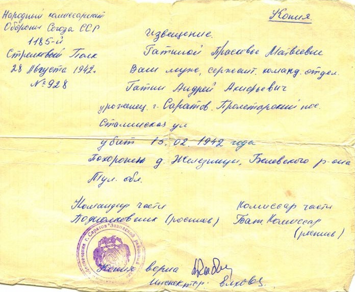 Извещения высланные на людей погибших в Тульской области