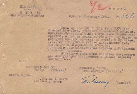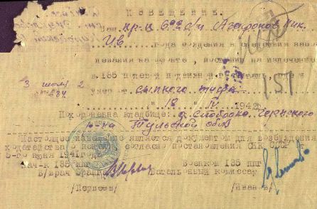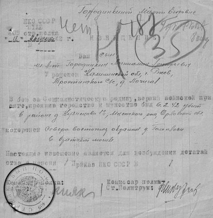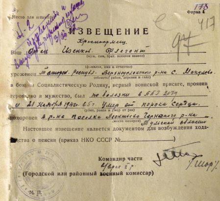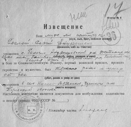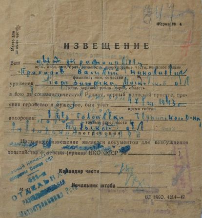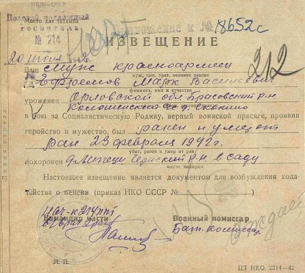 Извещения по воинам увековеным в Полтево