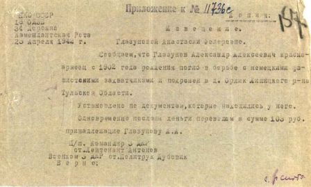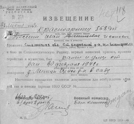Извещения на людей первично захороненных в Заводском хуторе
