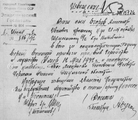 Извещения по воинам увековеченным в Плотицыно