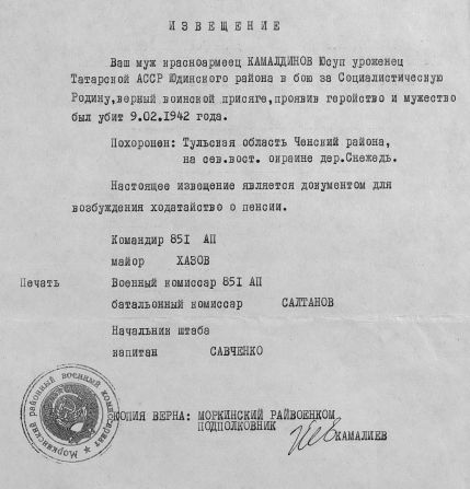 Извещения высланные на людей погибших в Чернском районе
