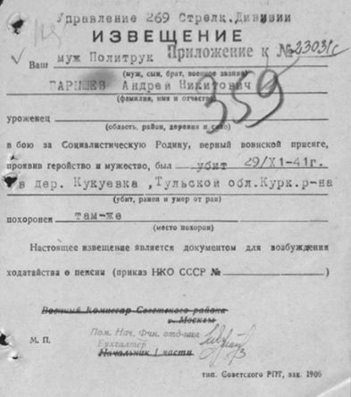 Извещения высланные на людей погибших в Куркинском районе (4)