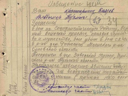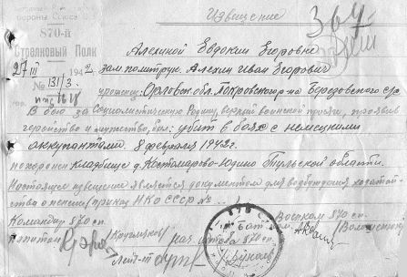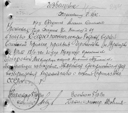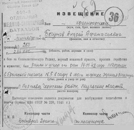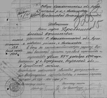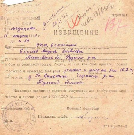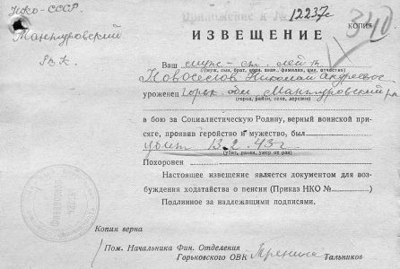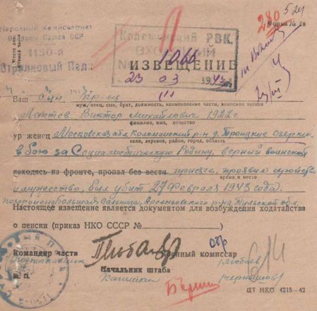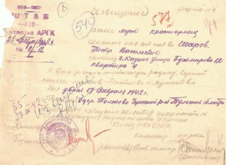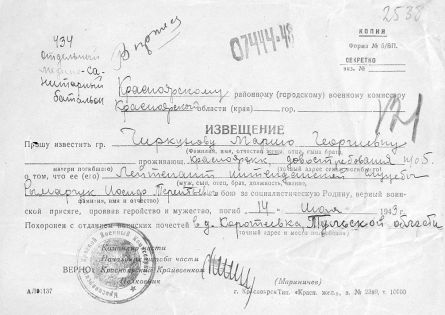 Извещения высланные на людей погибших в Тшлыково