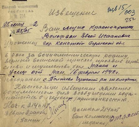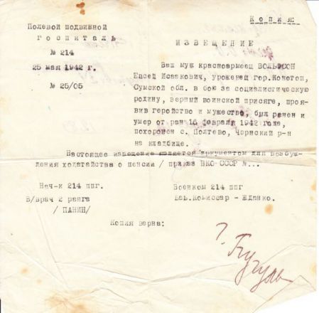 Извещения по воинам увековеным в Полтево