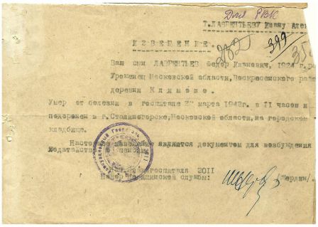 Извещения высланные на людей погибших в Новомосковском районе (17)