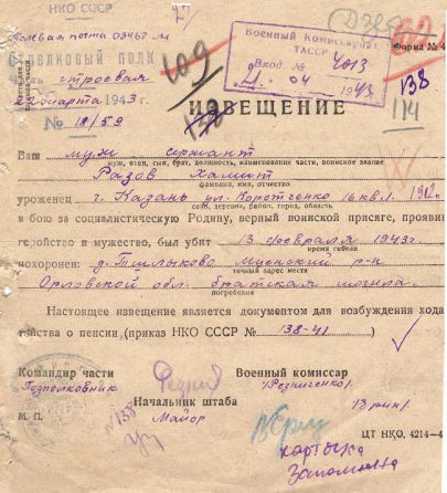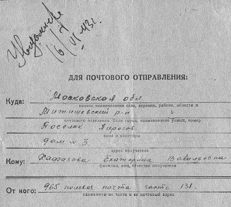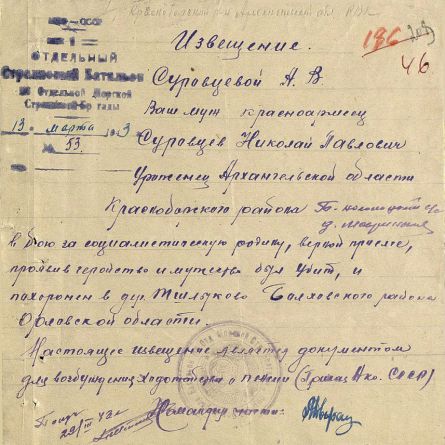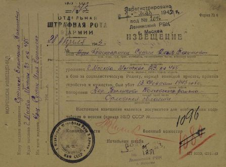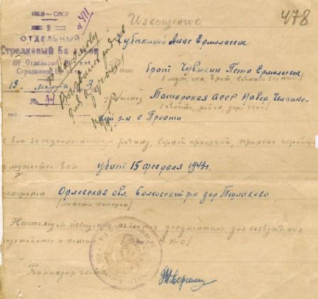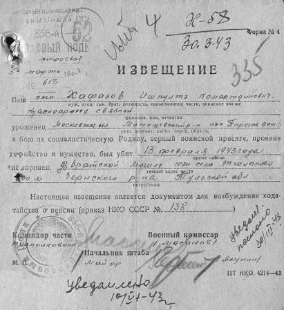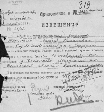 Извещения высланные на людей погибших в Тшлыково
