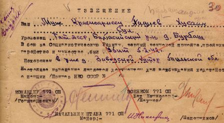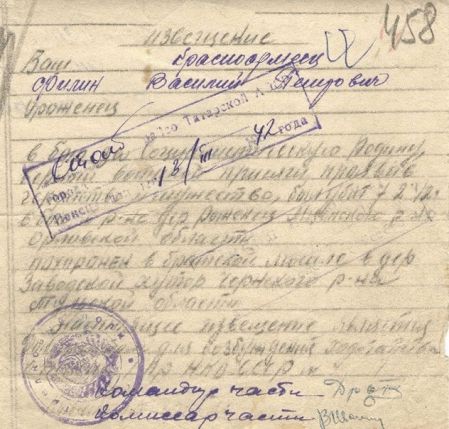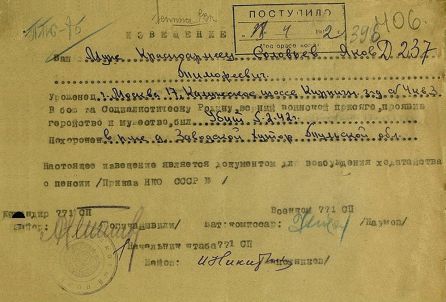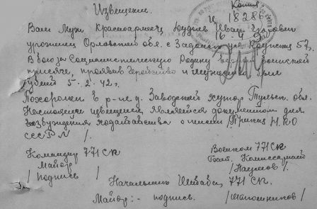 Извещения на людей первично захороненных в Заводском хуторе