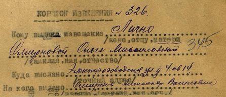 Извещения высланные на людей погибших в Чернском районе
