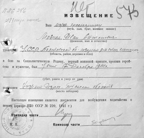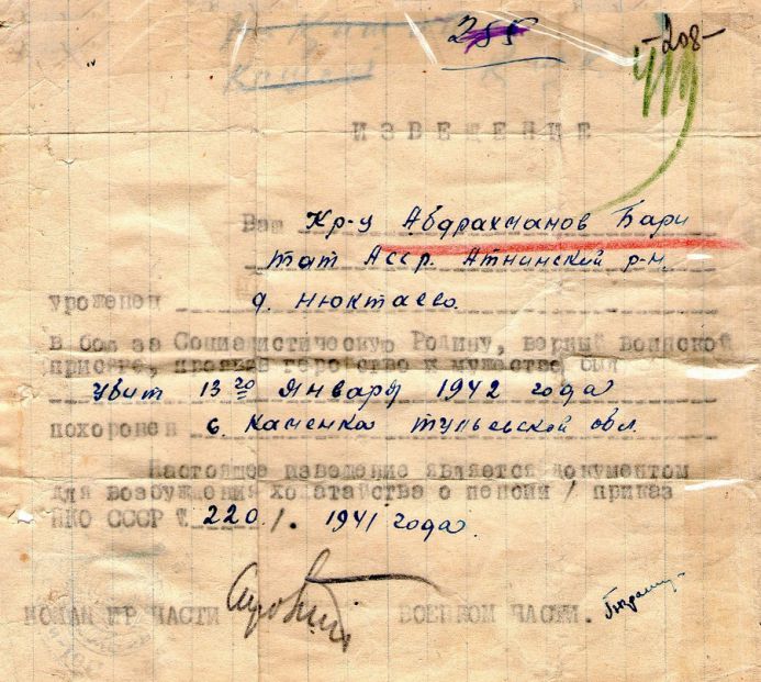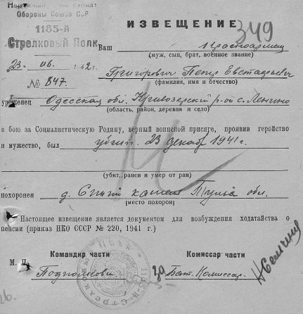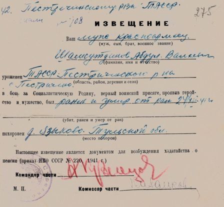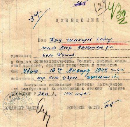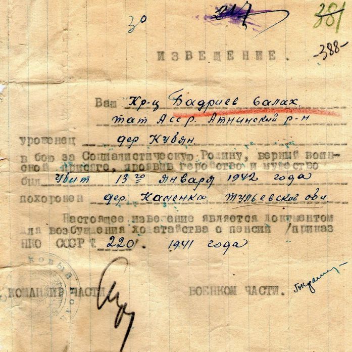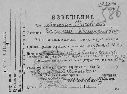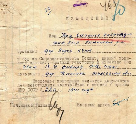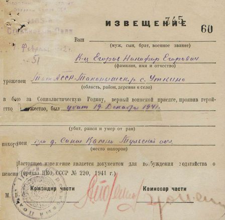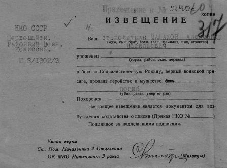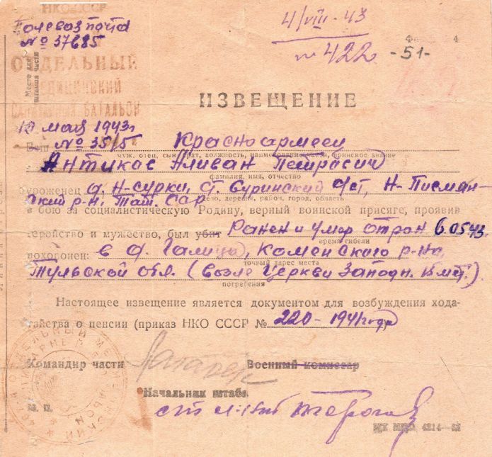 Извещения высланные на людей погибших в Каменском районе