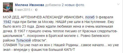Рассказ о воине http://www.polkmoskva.ru/people/1099910/ Родственники считают, что он похоронен в деревне Ровно. Однако 137 Стрелковая дивизия находилась в это время в Чернском районе. В ОБД Память Народа сохранилось боевое распоряжение штаба 137 Стрелковой дивизии от 07.02.1942. Воин погиб двумя днями позже. Упоминаются такие населенные пункт как Шеламово, Заводской хутор, Красный хутор и берег реки Зуша. Ясно что это Чернский район. https://www.obd-memorial.ru/html/info.htm?id=501738759 ВОИН УВЕКОВЕЧЕН В РОВНО. РЕАЛЬНО МЕСТО ГИБЕЛИ ДЕРЕВНЯ КУЗНЕЦОВО - ЭТО ДАЖЕ МЦЕНСКИЙ РАЙОН, ОРЛОВСКОЙ ОБЛАСТИ. НО РЕАЛЬНО ВОИН СКОРЕЕ ВСЕГО ЗАХОРОНЕН В ЗАВОДСКОМ ХУТОРЕ, ЧЕРНСКОГО РАЙОНА, ТУЛЬСКОЙ ОБЛАСТИ.